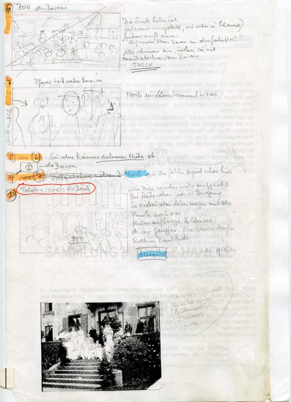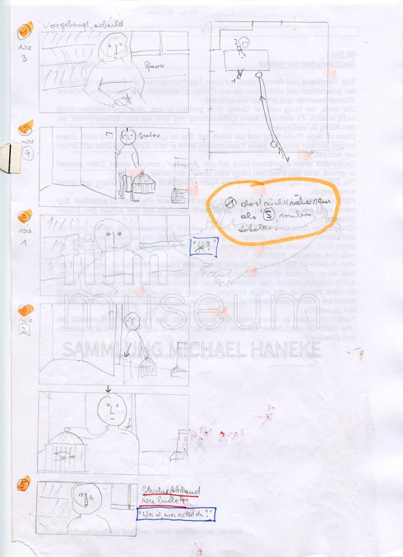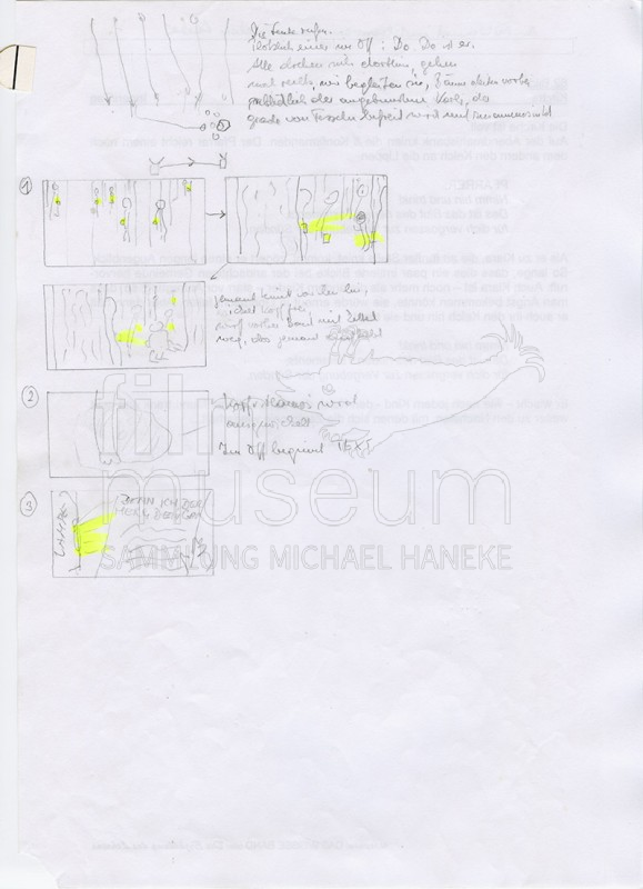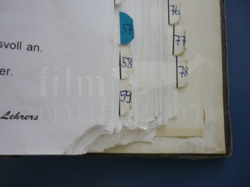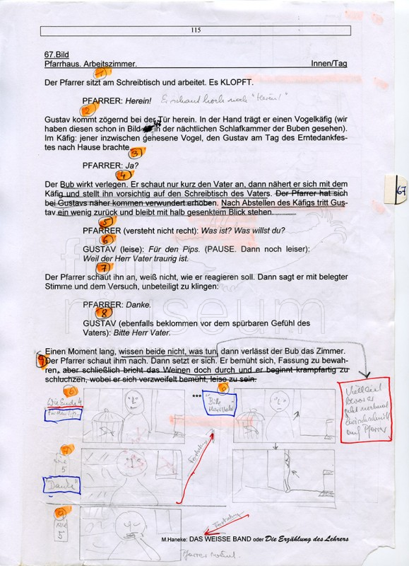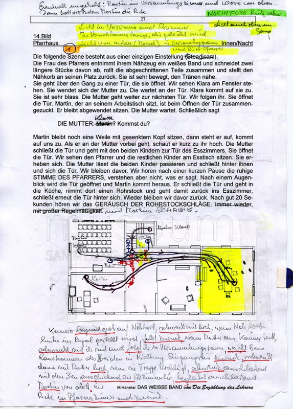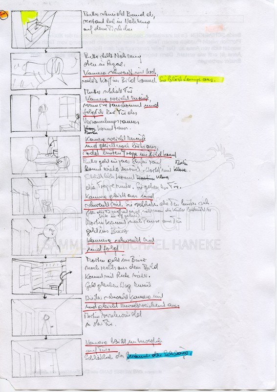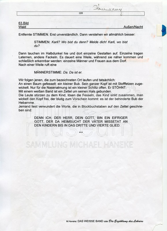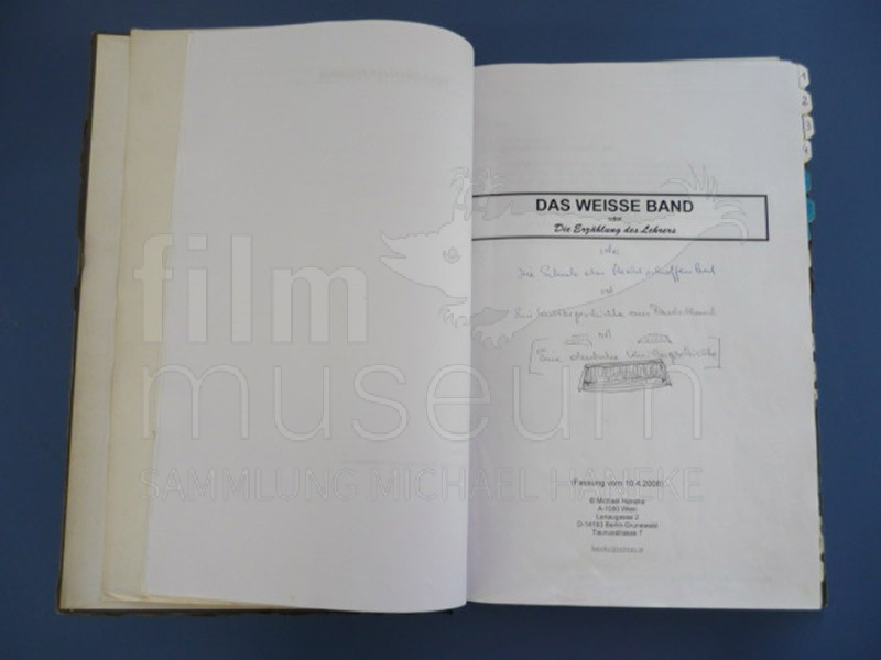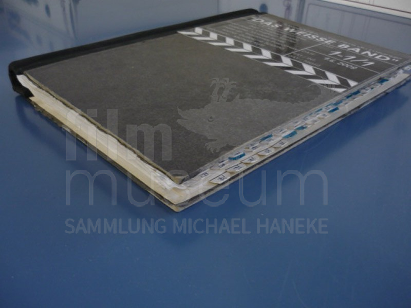 | enthält: | 1 Exemplar (dt.) mit Drehbuchseiten (rechts) und Anmerkungen, Storyboards, szenischer Auflösung, Notizen (links). Enthält außerdem Szenenabfolge (Stand 10.4.2008), VFX-Liste, sowie Personenverzeichnis |