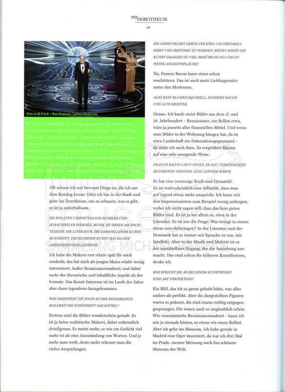"Bilderliebe", Interview von Doris Krumpl mit Michael Haneke, in: Dorotheum My Art Magazine, April 2013