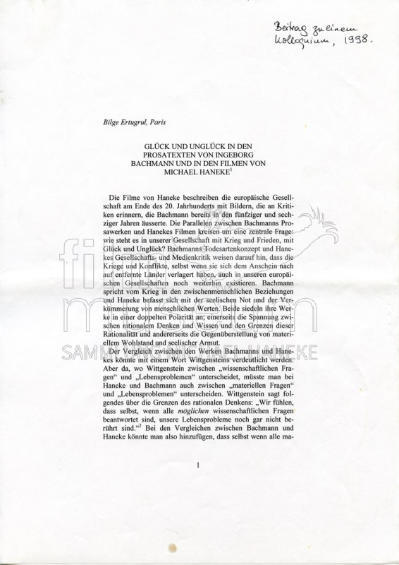 "Glück und Unglück in den Prosatexten von Ingeborg Bachmann und in den Filmen von Michael Haneke" von Bilge Ertugrul