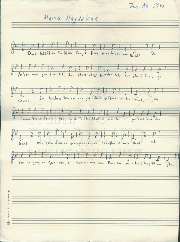 Notenpartitur zu "Maria Magdalena"